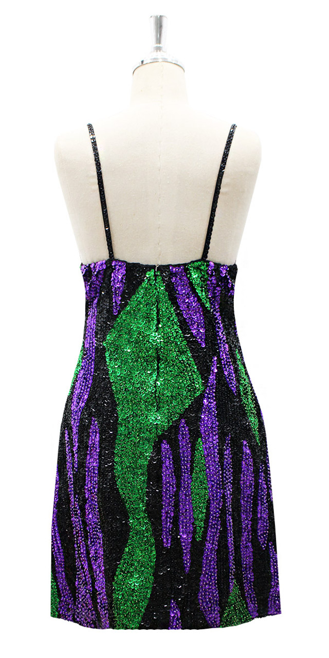 In-Stock Handmade Short Dress In 8mm Black Purple And Green Metallic Sequins Pattern Dress