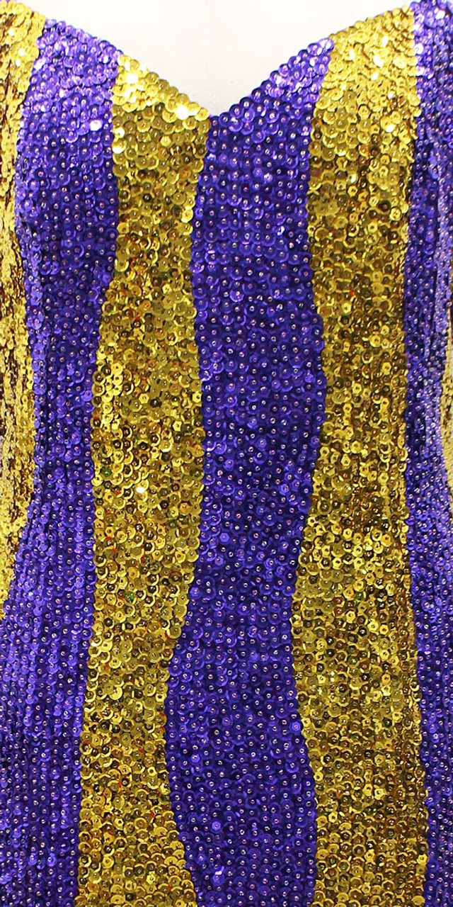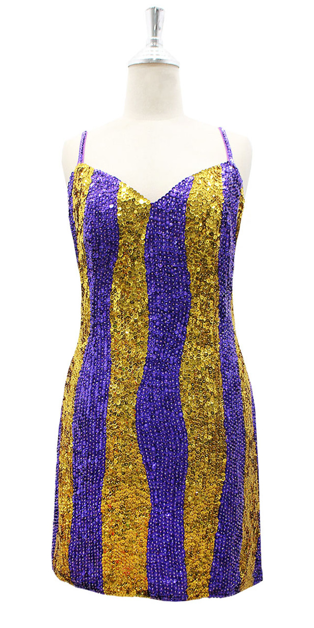 In-Stock Handmade Short Dress In 8mm Gold and Purple Metallic Sequins Pattern Dress