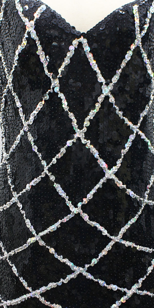Handmade Short Dress In 8mm Black Metallic Sequins with Silver Hologram Diamond Pattern