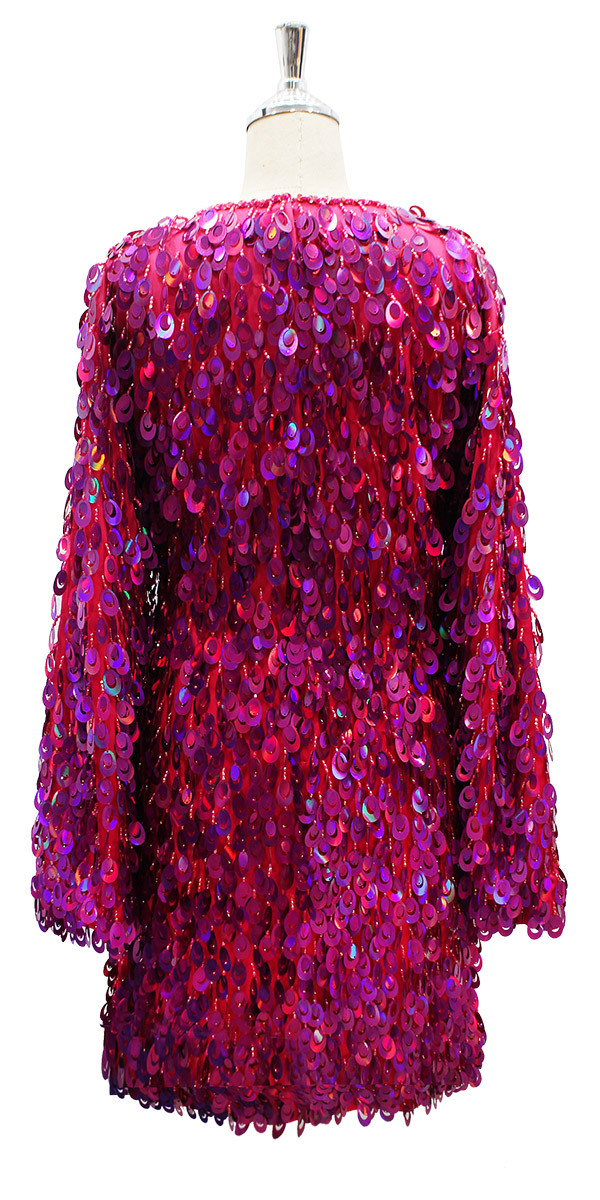 Handmade Short Dress In Fuchsia Cutout Hanging Iridescent Sequins
