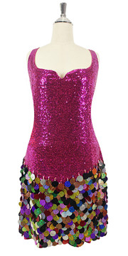 Add to Wish list Choose Options Fuchsias Short Fuschia Sequin Fabric Dress With Multi-Color Hologram sequins Skirt $229.00 $179.00 Lining: yes Stretch: yes (1 to 2 inches across body) Composition: P.E.T. sequins on 95% polyester 5% spandex base Care: Cold water delicates or hand wash: test first. Dry flat. Do not iron. Order slightly larger if unsure, as you can adjust down in... Choose Options Add to Wish list