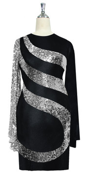 Add to Wish list Choose Options Blacks & Silvers Short patterned dress in metallic silver sequin fabric and stretch black fabric with sleeves $199.00 $149.00 Lining: yes Stretch: yes (1 to 2 inches across body) Composition: P.E.T. sequins on 95% polyester 5% spandex base Care: Cold water delicates or hand wash: test first. Dry flat. Do not iron. Order slightly larger if unsure, as you can adjust down in... Choose Options Add to Wish list
