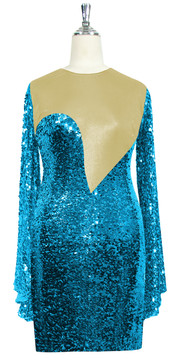 Add to Wish list Choose Options Turquoise And Gold Short patterned dress with sleeves in gold sequin fabric and turquoise stretch fabric $199.00 $149.00 Lining: yes Stretch: yes (1 to 2 inches across body) Composition: P.E.T. sequins on 95% polyester 5% spandex base Care: Cold water delicates or hand wash: test first. Dry flat. Do not iron. Order slightly larger if unsure, as you can adjust down in... Choose Options Add to Wish list