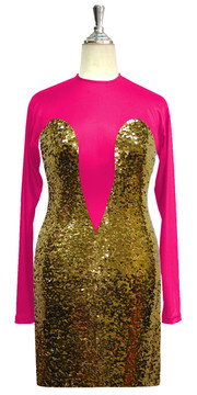 Add to Wish list Choose Options Fuchsias + Golds Short patterned dress with sleeves in gold sequin fabric and fuchsia stretch fabric $199.00 $149.00 Lining: yes Stretch: yes (1 to 2 inches across body) Composition: P.E.T. sequins on 95% polyester 5% spandex base Care: Cold water delicates or hand wash: test first. Dry flat. Do not iron. Order slightly larger if... Choose Options Add to Wish list