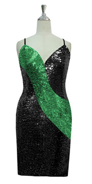 Add to Wish list Choose Options Blacks Short patterned dress in black and green sequin spangles fabric $199.00 $149.00 Lining: yes Stretch: yes (1 to 2 inches across body) Composition: P.E.T. sequins on 95% polyester 5% spandex base Care: Cold water delicates or hand wash: test first. Dry flat. Do not iron. Order slightly larger if unsure, as you can adjust down in... Choose Options Add to Wish list
