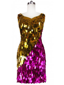 Add to Wish list Choose Options Fuchsias + Golds Short Handmade Paillette Fuchsia and Gold Sequin Dress $219.00 $169.00 Lining: yes Stretch: yes (1 to 2 inches across body) Composition: P.E.T. sequins on 95% polyester 5% spandex base Care: Cold water delicates or hand wash: test first. Dry flat. Do not iron. Order... Choose Options Add to Wish list