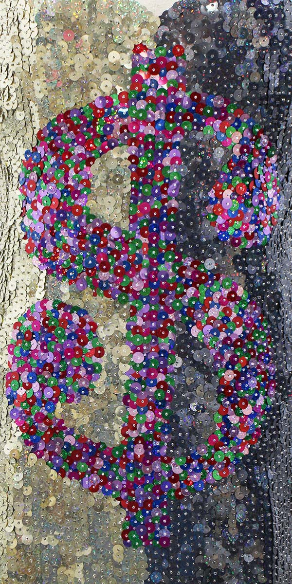Handmade Short Dress In 8mm Gold and Black Metallic Sequin with Multi-Color Dollar Symbol